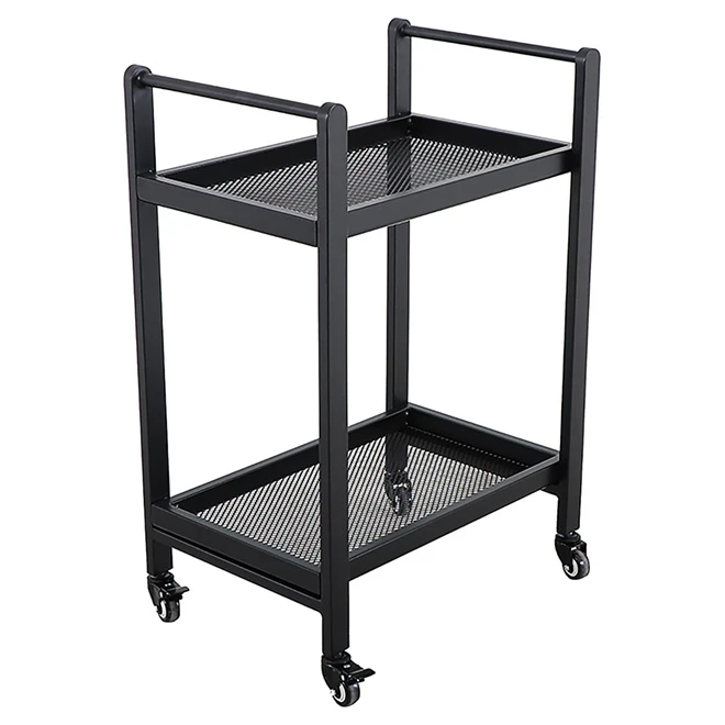 This serving table is a great accessory for your outdoor living space. Featuring a handle at both ends and mounted on 4 swivel castor wheels, it offers great manoeuvrability. With its weather-resistant steel frame, it has 2 mesh shelves that provide ample serving space. The 2 front castors lock allowing for safety and stability. This product is backed by a 1-year warranty.