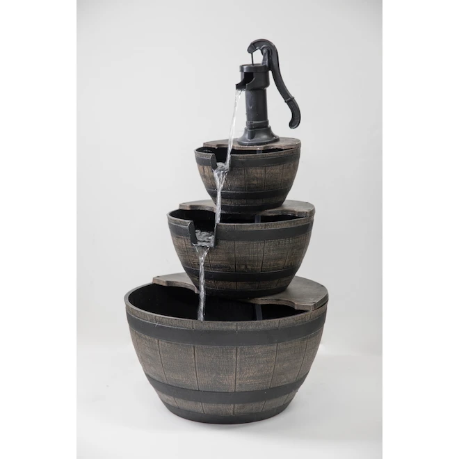This brown fountain will add a beautiful touch to your exterior decor. It is crafted and painted by hand.