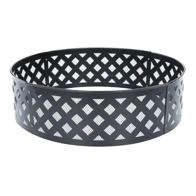 Keep your outdoor fire contained with this stylish 30-inch fire ring with a steel panel featuring a stamped lattice pattern. The open lattice pattern with integrated spark screen shows the beauty of the flame while keeping sparks under control. The black powder coating finish resists high temperatures so it won/t fade away and rust over time. Assembling this 4-piece construction fire ring is quick and easy, and requires no specific tool.