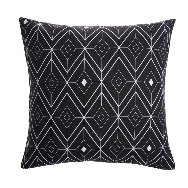 Create an elegant and comfortable place to relax outdoors with this beautiful cushion from Style Selections. UV-treated to resist fading, the toss pillow has a black and white polyester fabric with a geometric pattern and cleans easily with mild soap and water.